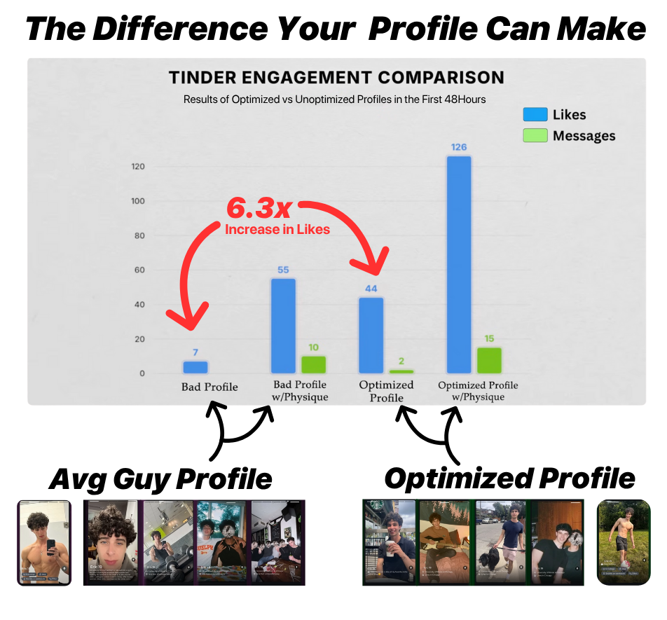 Each of the six photo types is proven to perform best across thousands of profiles, giving you a clear, data-backed roadmap for what works.Â